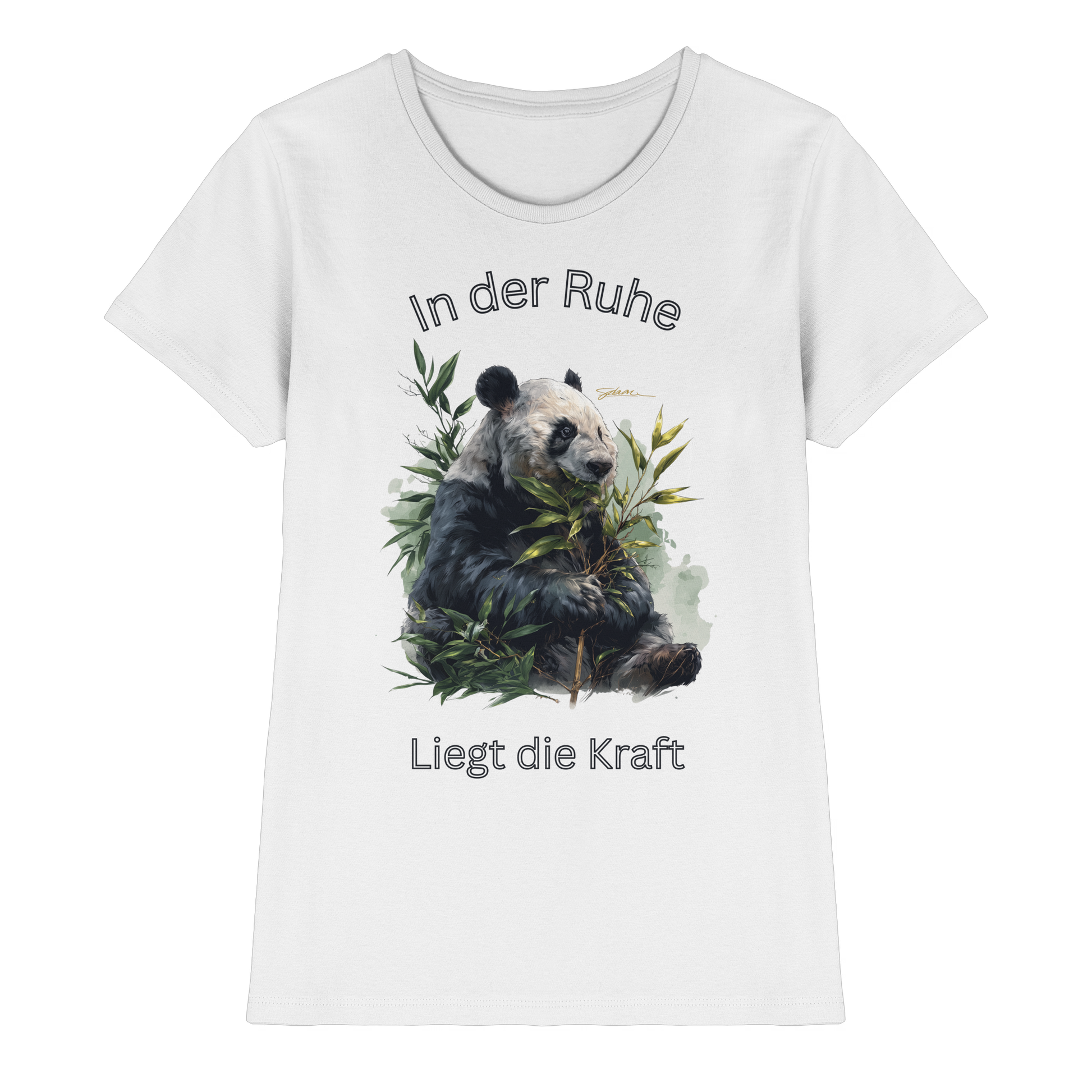 Erleben Sie die Gelassenheit eines Pandas mit unserem "In der Ruhe - Liegt die Kraft" Ladies Premium Shirt. Diese limitierte Auflage bringt Ruhe und Stärke zusammen in einem einzigartigen Design.
